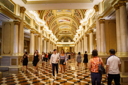 Foyer to Bellagio Hotel in Las Vegas with people walking