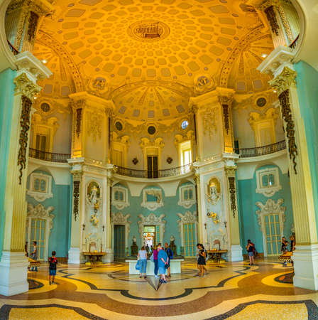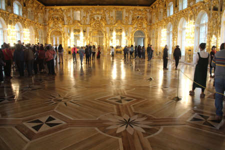 Lots of tourists in the Catherine Palace, a Rococo palace, the summer residence of the Russian tsars. St. Petersburg, Russia