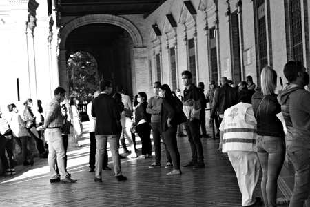 LONDON, UK - SEPTEMBER 28, 2015: Tourists visiting the British Museum vintage