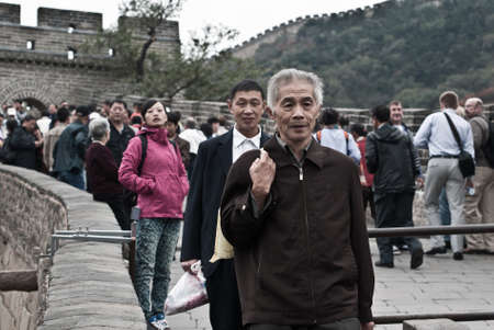 BEIJING - OCT 13, 2013 : Many visitors walks on the great wall at weekend. The Great Wall of China is the longest man-made structure in the world.