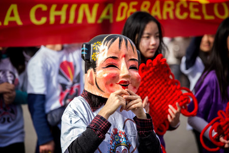Barcelona, Catalonia, Spain. 04 st Feb, 2017. Transparent of the Chinese new year parade in Barcelona