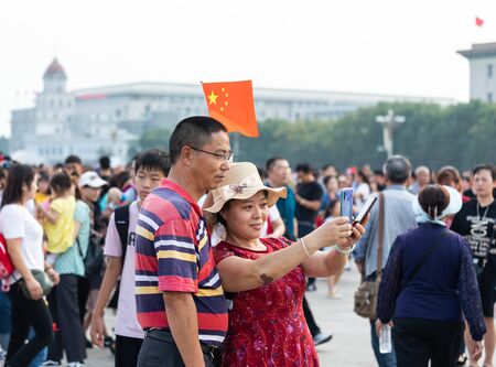 BEIJING-October 3: Celebrate the national day on October 3, 2019 in Beijing, China. People celebrating China National Day in Tiananmen Square.