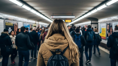 Modern commuters in a bustling subway station