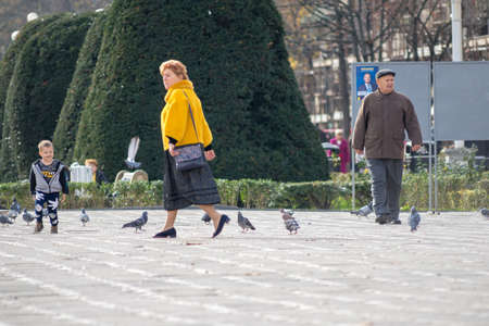 TIMISOARA, ROMANIA - NOVEMBER 17, 2019: People walking on the street. Real people.