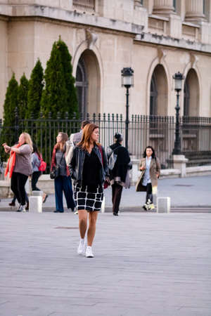 TIMISOARA, ROMANIA - SEPTEMBER 16, 2016: Woman walking on the street. Real people.