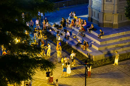 People rest in the evening near monument to Volodymyr the Holy in Kyiv, Ukraine. July 2020. High quality photo