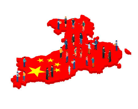 Large group of people in the shape of China flag. Peoples Republic of China. Population concept. Isometric vector illustration