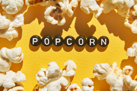 Popped Popcorn (maize kernels) and shaped in the word ‘popcorn’