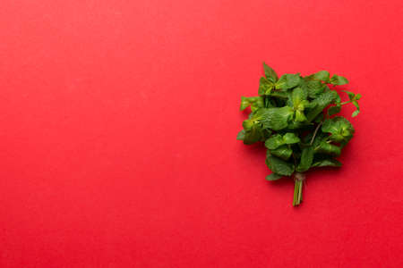 Mint leaf. Fresh mint on Colored background. Mint leaves isolated Top view with copy space.