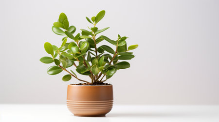 Jade Plant (Crassula ovata) Thick, oval-shaped green leaves with a glossy finish in a ceramic bonsai pot, a rustic terracotta