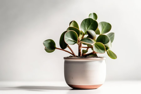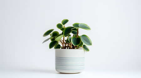 Photo of Peperomia in minimalist pot as houseplant for home decoration isolated on white background