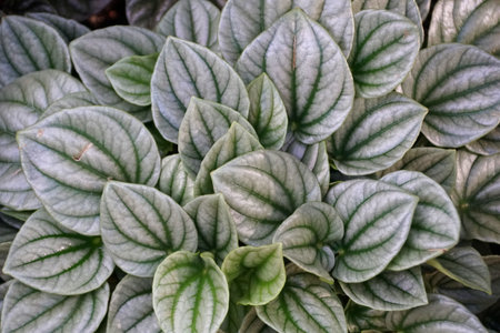 Green leaves of Emerald-Ripple Peperomia Silver Ripple, a tropical plant
