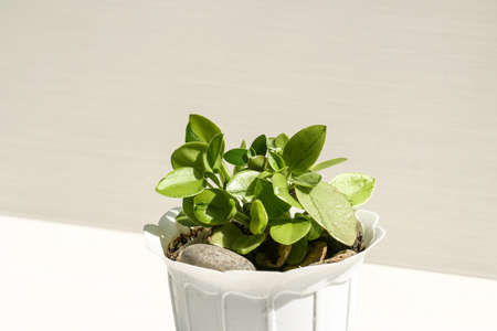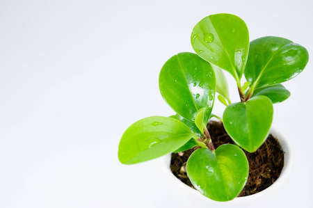 Houseplant peperomia in a white flowerpot isolated over white close up copy space