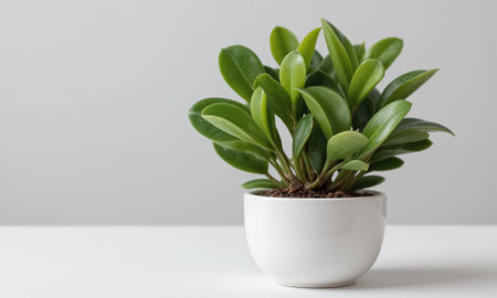 A beautiful green plant in a simple white pot rests on a minimalist table, creating a serene atmosphere perfect for any indoor space.