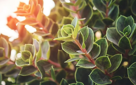 Crassula ovata Jade Plant,Money Plant succulent plant close up.Selective focus.Floral background
