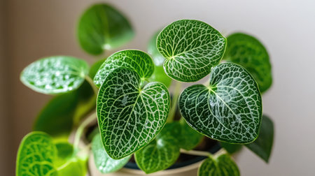 A closeup view of a green leafy plant with intricate vein patterns. This vibrant indoor plant adds a touch of nature and freshness to any space, perfect for home decor.