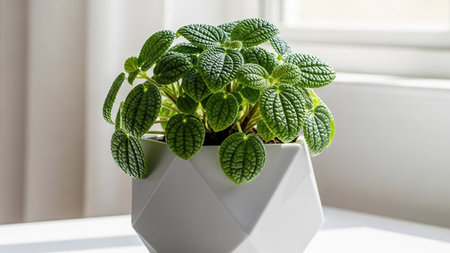 houseplant peperomia caperata in white flowerpot