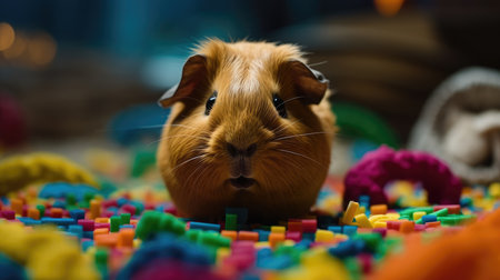 A guinea pig wearing glasses and holding a cup of coffee, AI