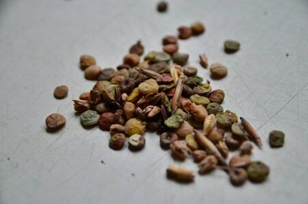 Seeds of tomato and dill. Seeds suspended for sowing. Tomato seeds and dill