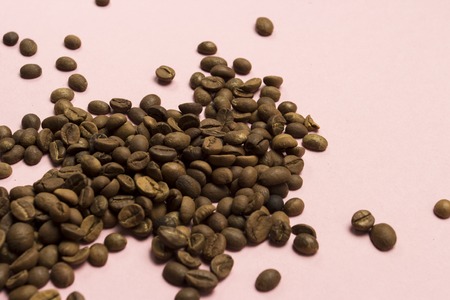 Cropped image of lots of grains on woman's hands over the dining table with cup of coffee and bread.