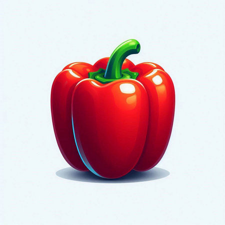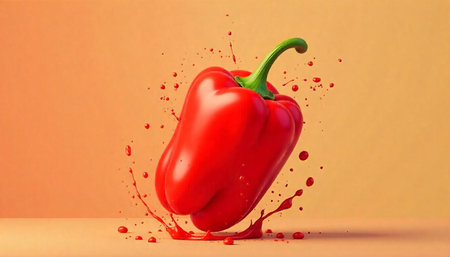 Fresh red bell pepper close up on geometric colorful background. Organic vegetable suitable for vegans and vegeterians. Healthy food ingredient concept
