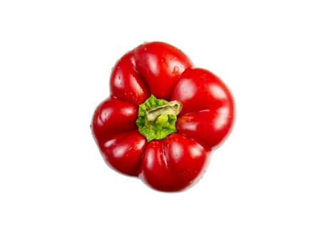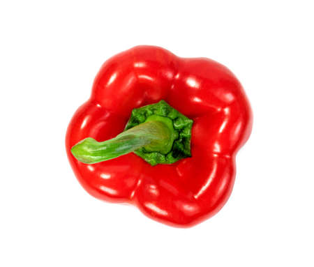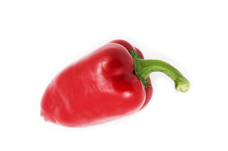 Paprika bell papper isolated on white background. Close up. One single shiny red pepper.