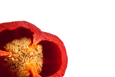 detail of a red capsicum fruit illustrating a healthy lifestyle isolated on white background