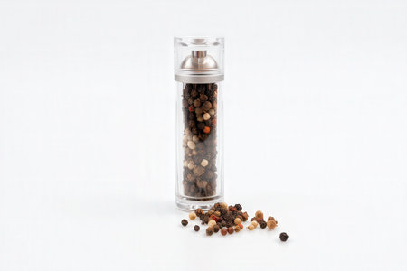 A stylish pepper shaker, elegantly designed and isolated against a clean white backdrop, perfect for food photography and kitchen decor