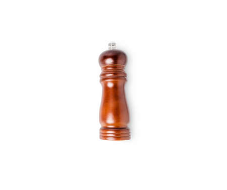 Wooden pepper or salt mill isolated on white background.