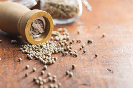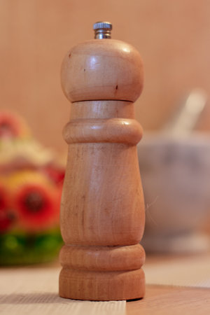 pepper mill on wooden table