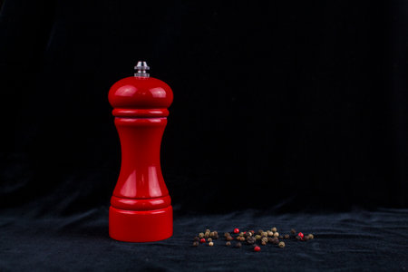 a red pepper shaker on black background in the kitchen