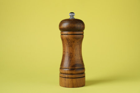 pepper mill against warm yellow textured background