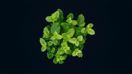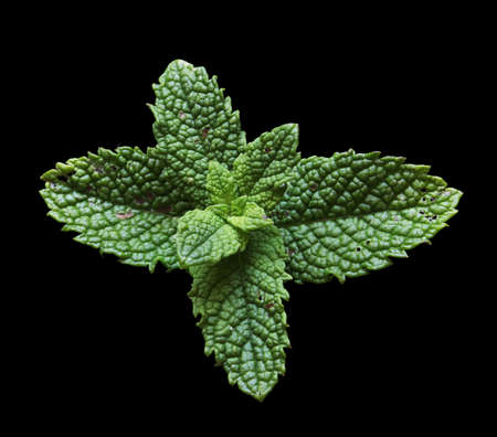 Photography of a mint head isolated on black for food illustrations