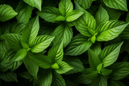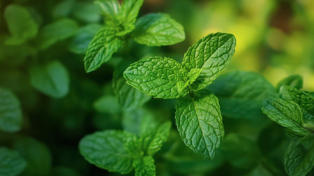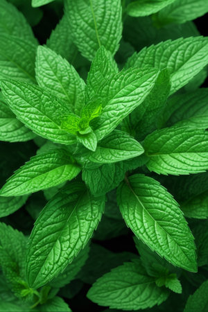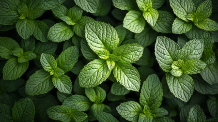 Close-up of fresh green mint leaves with intricate texture, ideal for backgrounds or nature-themed concepts.