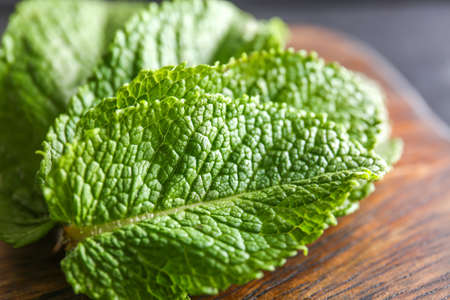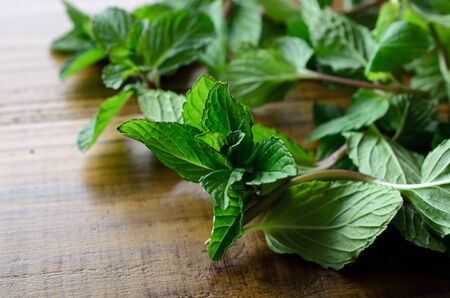 Fresh mint on a wooden background. Selective focus. Close up.