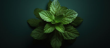 Vibrant green mint leaves with serrated edges on dark background