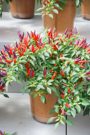Ornamental pepper (dwarf pepper, Capsicum annuum), potted pepper ornament mixed color