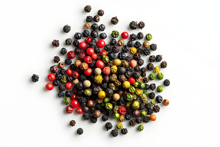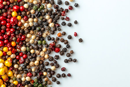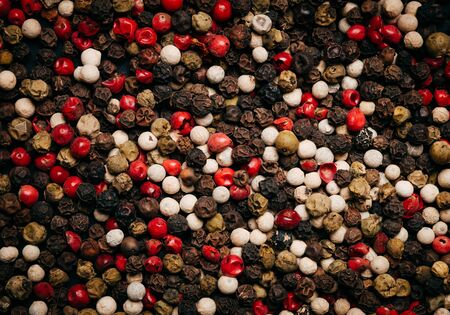 A mixture of different peppercorns white, black, red and green peppers spices.