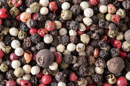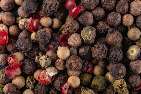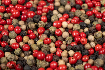 black peppercorns colorful pepper seeds close-up macro texture condiments and spices