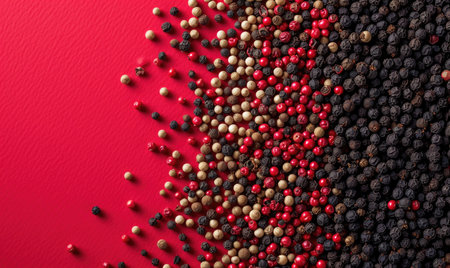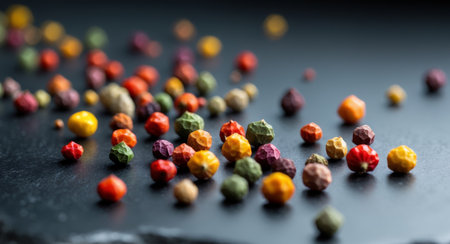 AI Generated. Colorful peppercorns resting on dark stone surface
