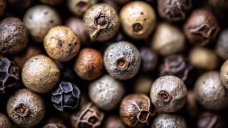 Close-up shot showcases diverse peppercorns unique colors and textures.
