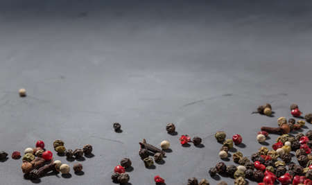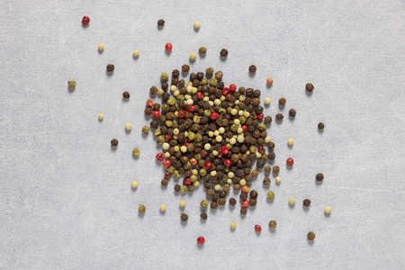 Multicolored colorful papper corn spice on grey background