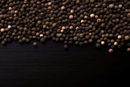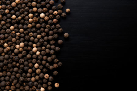 Black background with peppercorn seeds Text space available