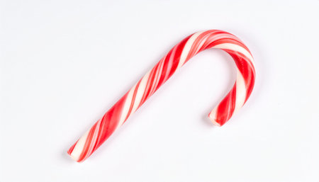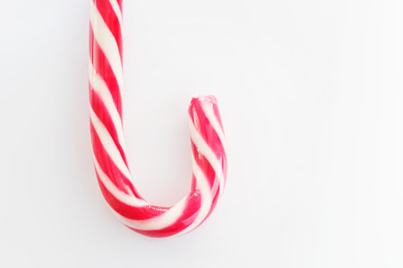 Mint hard candy cane striped in Christmas colors Red and White isolated on white background. Traditional Merry Christmas edible decoration