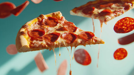 Delicious pepperoni pizza slices against a vibrant background
