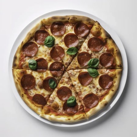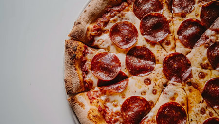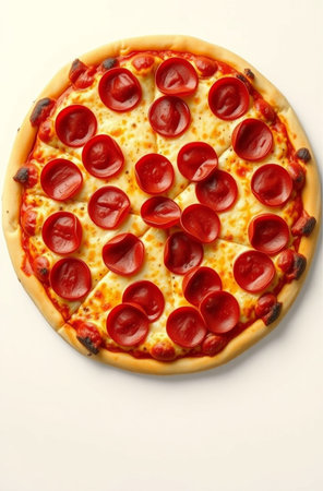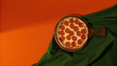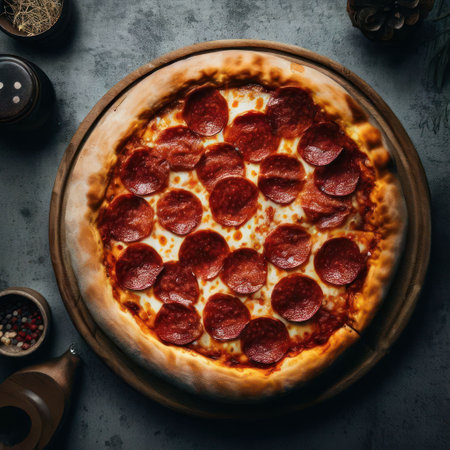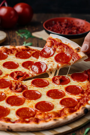 Pepperoni pizza is the epitome of classic comfort food, loved by pizza enthusiasts worldwide. With its thin or thick crust, generous layer of tangy tomato sauce, melty cheese, and perfectly spiced pepperoni slices, each bite is a symphony of flavors.generative ai