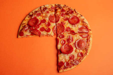 pepperoni pizza on orange color background