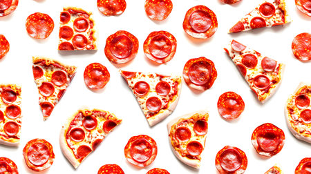 Seamless pattern of slices of pizza on a white background.