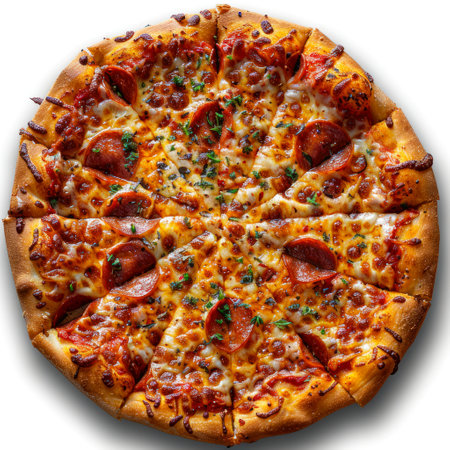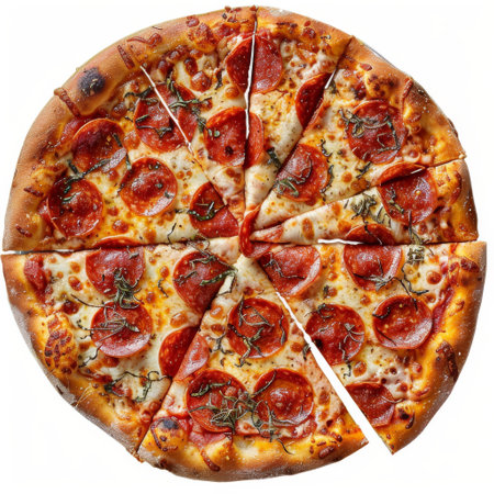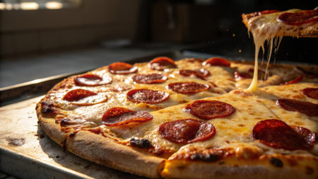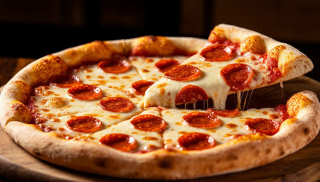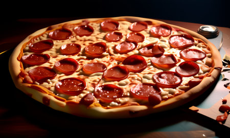 Delicious pepperoni pizza with melted cheese, sliced and ready to be enjoyed