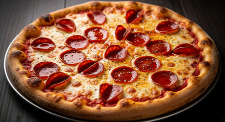 Pepperoni pizza is the epitome of classic comfort food, loved by pizza enthusiasts worldwide. With its thin or thick crust, generous layer of tangy tomato sauce, melty cheese, and perfectly spiced pepperoni slices, each bite is a symphony of flavors.generative ai